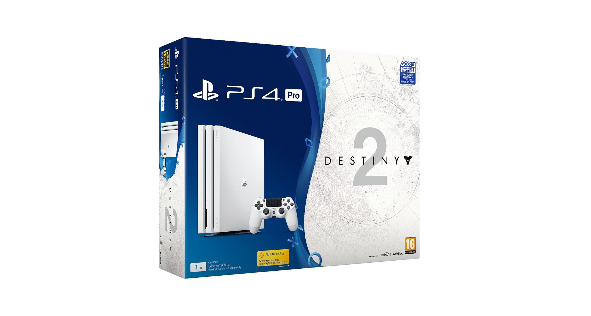 Need kes soovivad omale osta Destiny 2 PS4 Pro komplekti, saavad valida Glacier White ja Jet Black versioonide vahel. Mõlemad PS4 Pro komplektid sisaldavad: