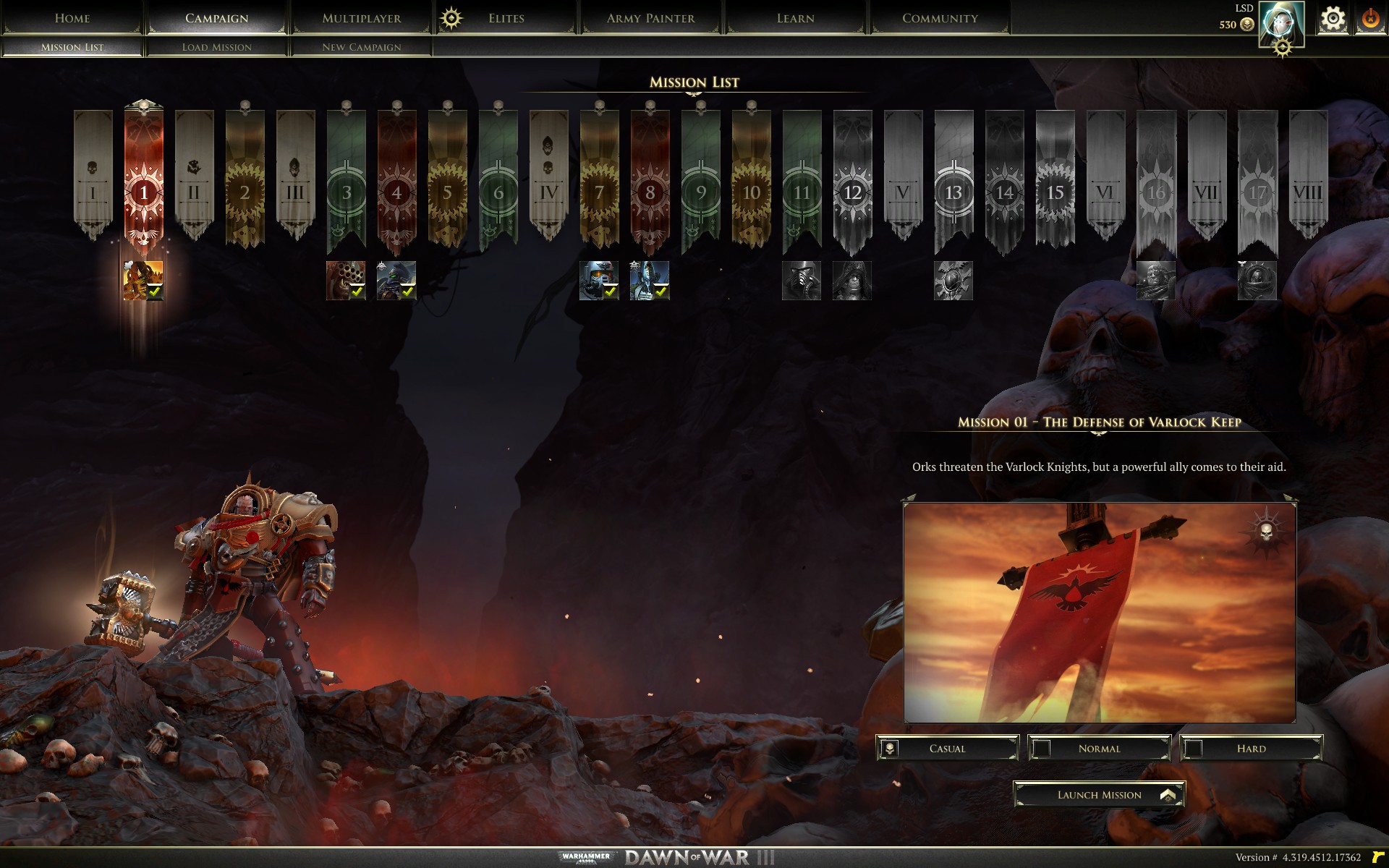 Kui võtta käsile kampaania, siis antakse kõigepealt mängimiseks inimeste rass, kelle eesotsas on kosmoseväelaste üksuse Blood Ravens komandör Gabriel Angelos. Väed tõttavad appi ühele oma impeeriumi planeedile Cyprus Ultima, mida on ründamas orkide väed, keda juhib sõjapealik Gitstompa. Lahinguga liituvad ka eldarite, Tolkien’i haldjaid meenutava rassi väed, kelle juhiks on nägija Macha. Eldarid saabuvad planeedile iidse ettekuulutuse tõttu, mis on lausa kinnisideeks nende ainuvalitsejale Kyre.